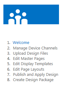 There is support for a completely new design process in SharePoint 2013. This is administered by the new Design Manager (see the figure below). The recommended process for designing a web site in SP2013 includes:
