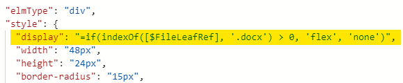 "display": "=if(indexOf([$FileLeafRef], '.docx') > 0, 'flex', 'none')"